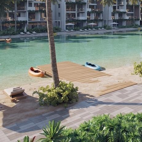 6,000 mts de playa artificial, parque verde, gimnasio, restaurante, salón spa, espacio para yoga, coworking, mini market y mucho más.